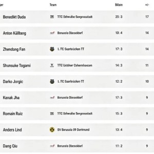 18 04月 2026 4 乒乓球德甲联赛发布四强宣传片、球员排名,樊振东落后杜达、安东 随着2025-2026赛季德甲乒乓球联赛第21轮比赛的结束,整个赛季也进入了收官阶段。4月17日,联赛四强宣传片发布,首... 开云集团 #赛事 #排名 #安东 #萨尔布吕肯 #赛季 #比赛 #球员 #乒乓球 #樊振东 #杜达 #鲁伊斯 #德甲